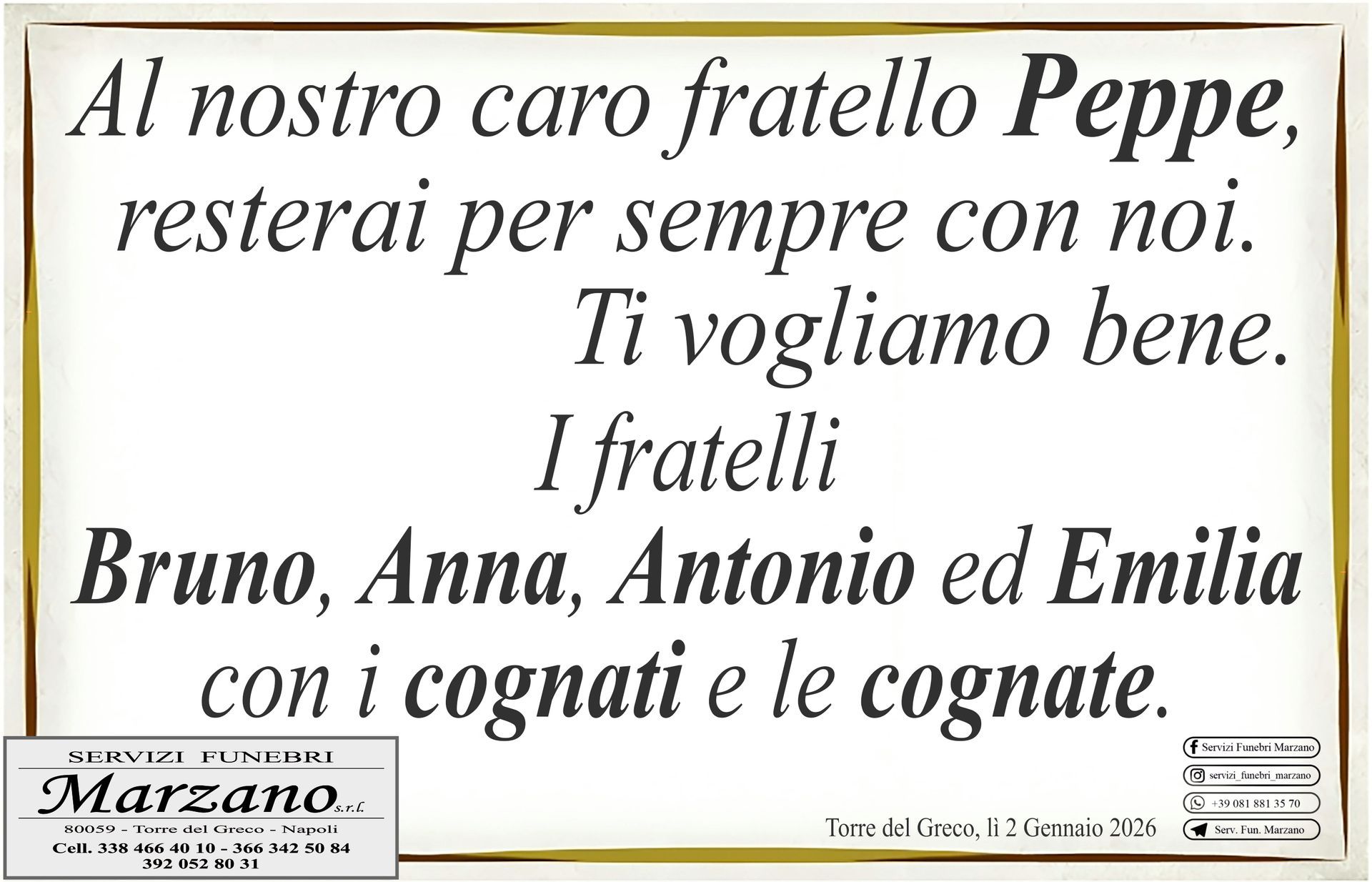 deceduto il 01-01-2026 a Torre del Greco - Portami qui!